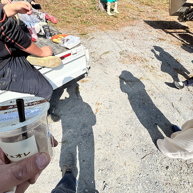 せっかくの日曜日に手伝わしてしまった3人と一服していたら奥様がたくさんの肉まんと、お菓子と、飲み物持って来てくれてみんなでお茶。暖かくて外でお喋りするには良い日だ。