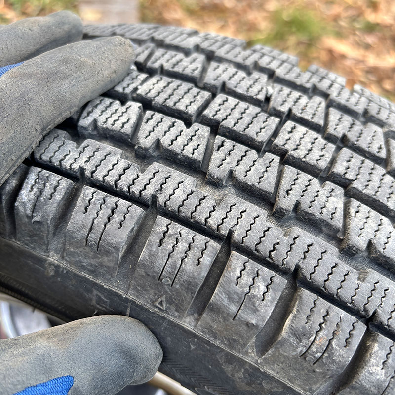 スリップサインは全然出てないけど4年前に買ったタイヤだから来季は新しくした方がいいかも。