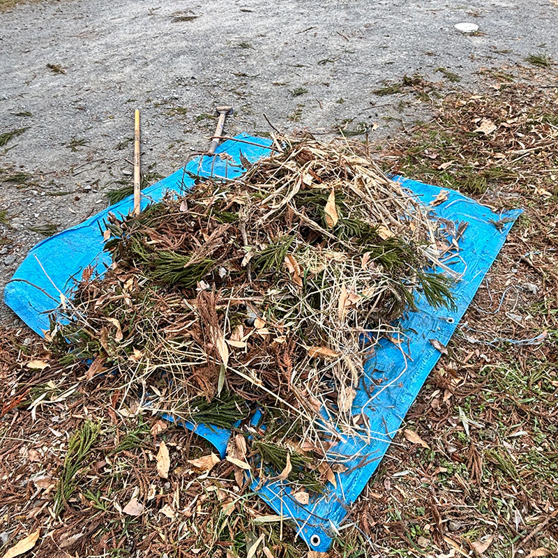 。。。の前に裏山からの落ち葉と杉っ葉で大変なことになってるので畑の上だけでも取り除く。
