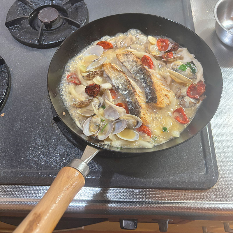 居酒屋我家、開店。鱈の切り身でアクアパッツァ。