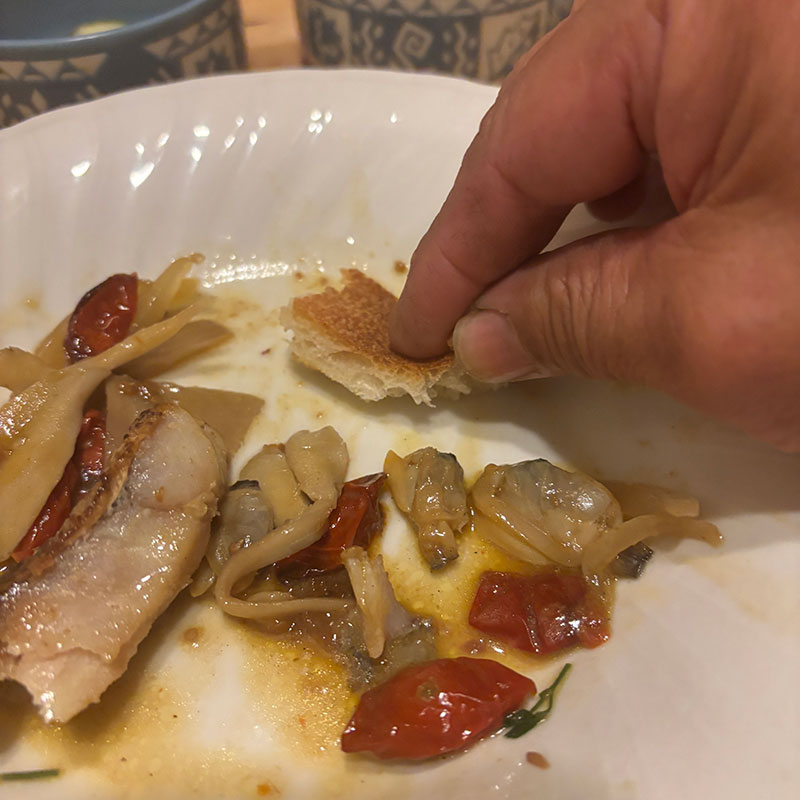 美味しいソースは地元の美味しいバゲットでぬぐいとっていただきます。ごちそうさまでした。
