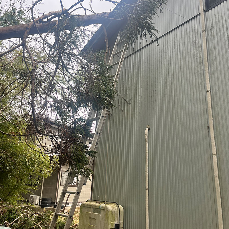 屋根に登ってチェンソーで落とせるだけ落とした。