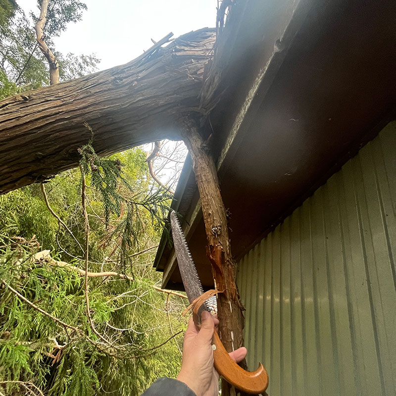 暴風の倒木が屋根に直撃、の続き。