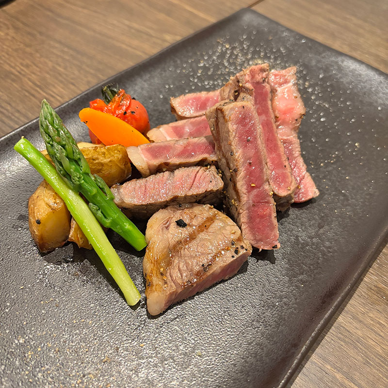 国産サーロインステーキ。柔らかい。カミさんの好きなレア具合。塩胡椒だけで美味しい。使われてる塩胡椒も美味しい。