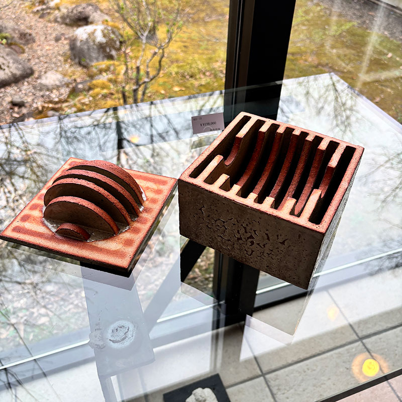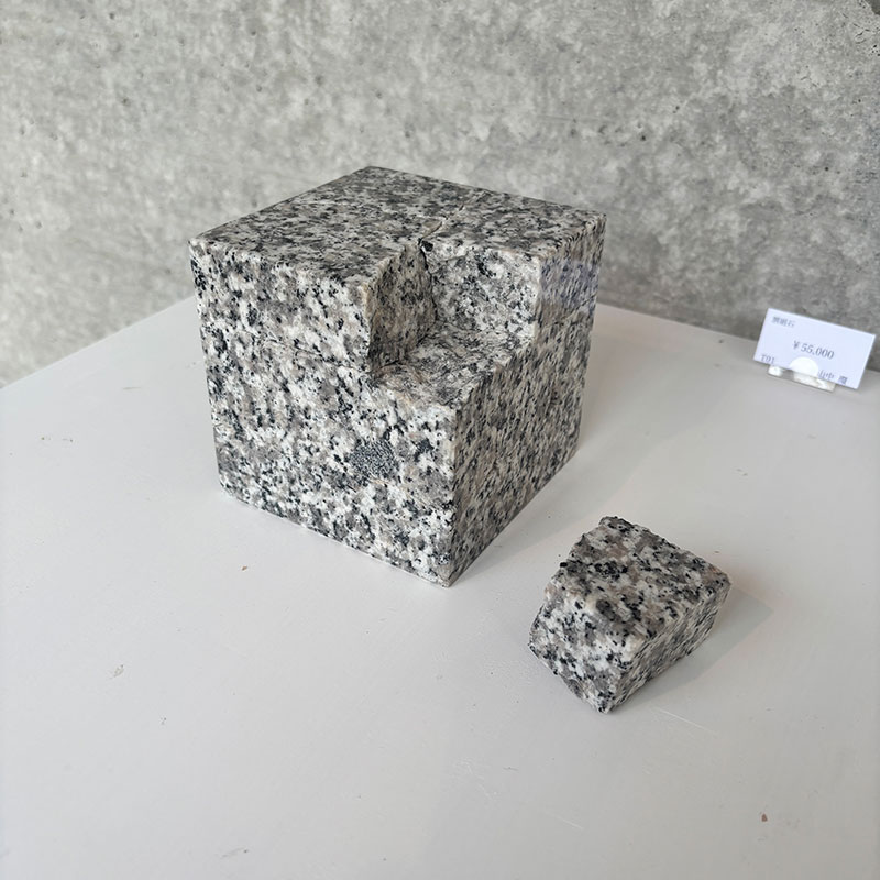 箱にぴったり収まるサイズの白御影石をいくつも割った作品。難しい3Dパズルです。