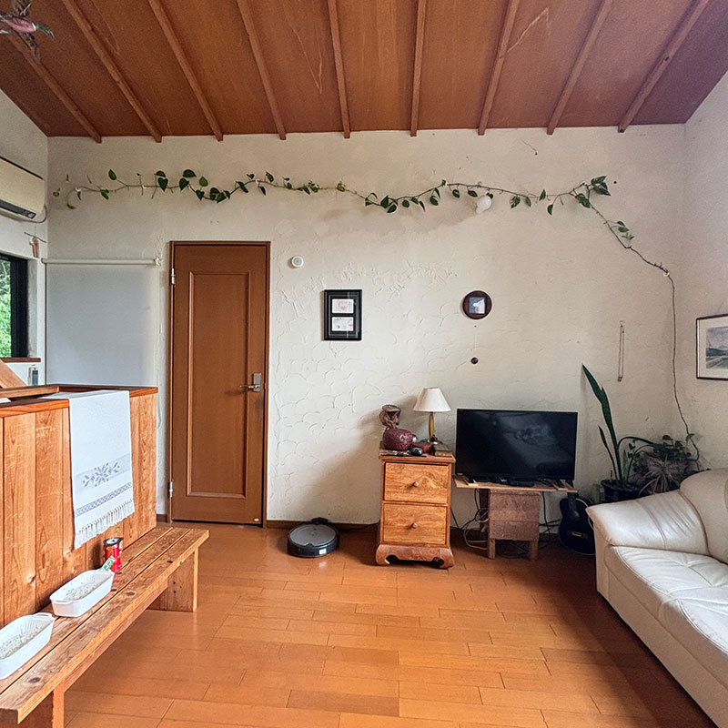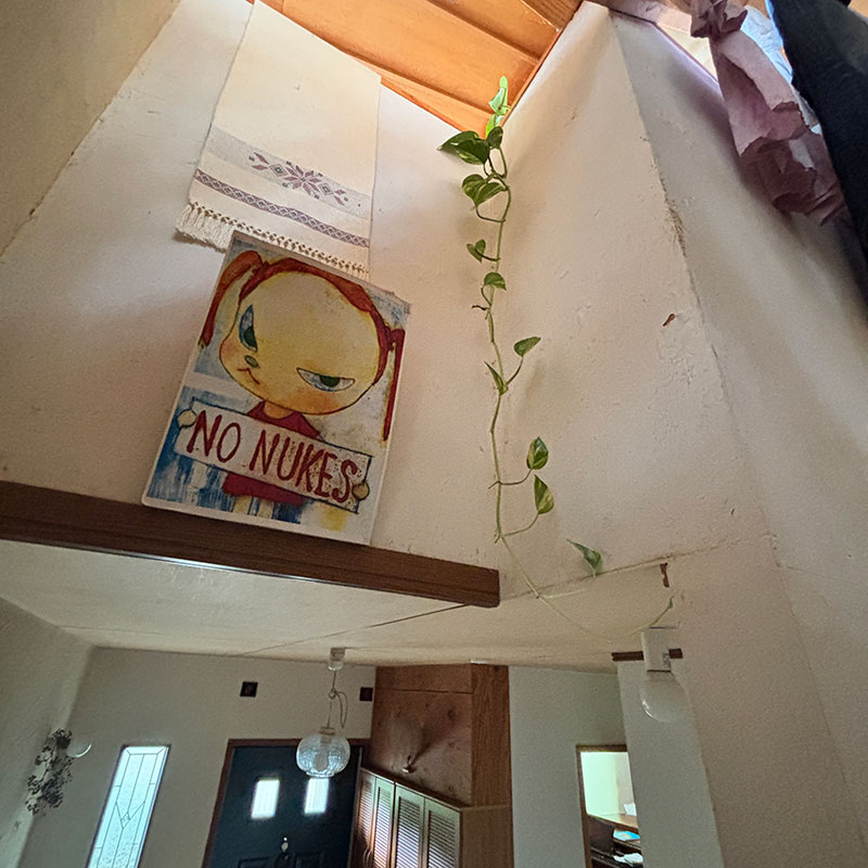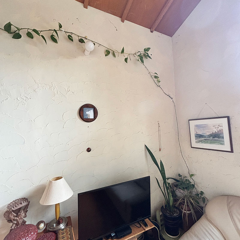 2階の居間の壁を横断させてるポトス。