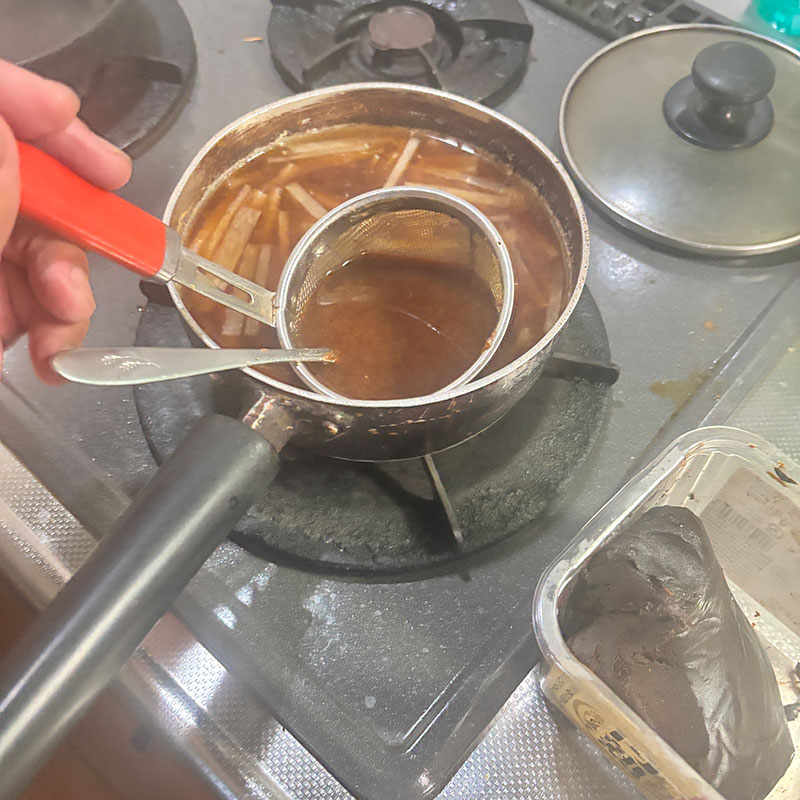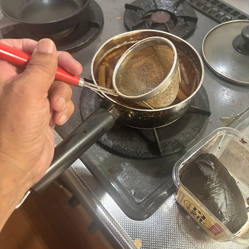 熟成した硬い味噌は味噌こし器がなかったら永遠に溶かせない・笑