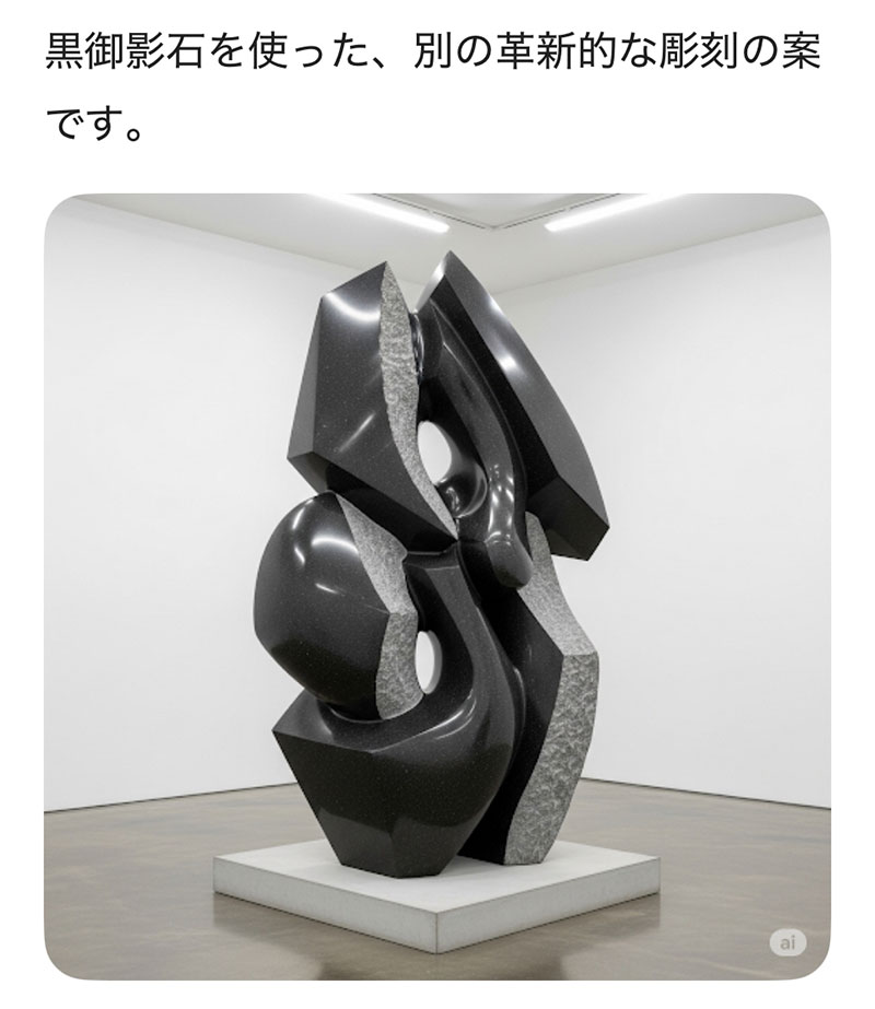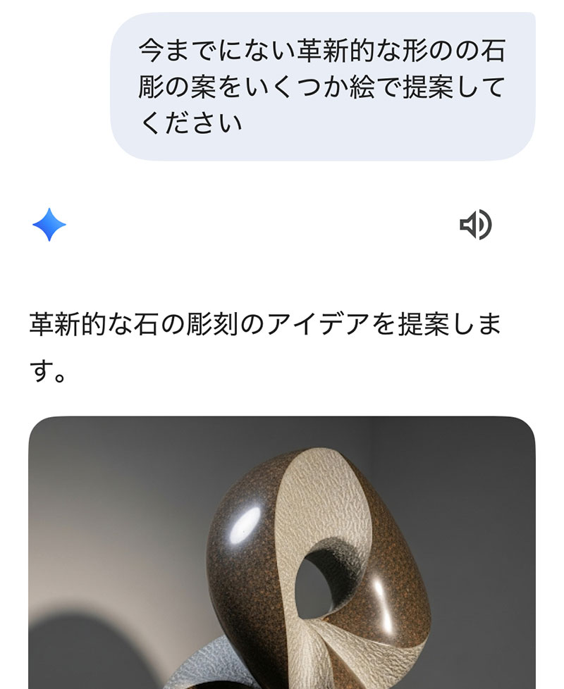 以下の写真はGeminiに「革新的な石の彫刻の案を提示して」