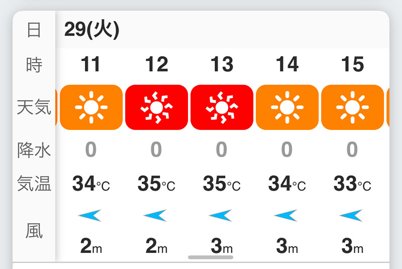朝から暑いし今日の気温も体温に迫る予報。