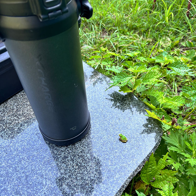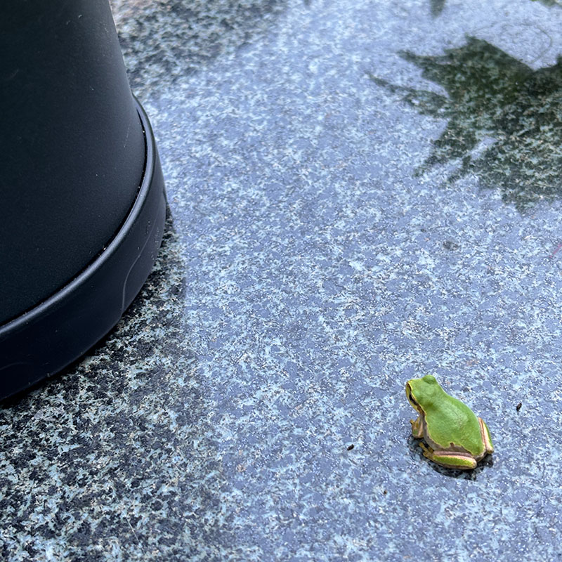 石テーブルの上のアマガエル。