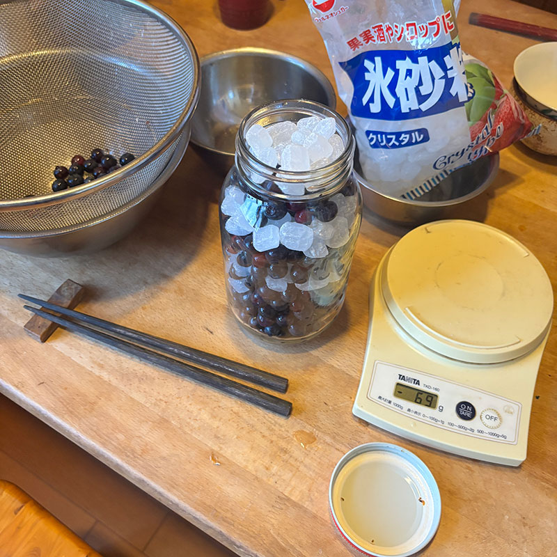 半分かき氷のシロップ仕込む。