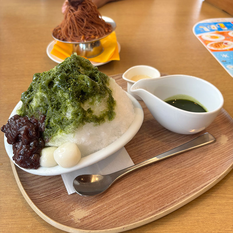 かき氷はランチのミニでも僕らふたりには多いのでミニ宇治金時ひとつ頼んで