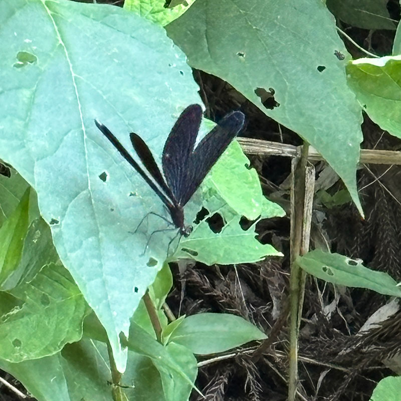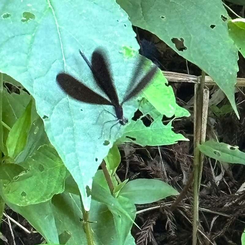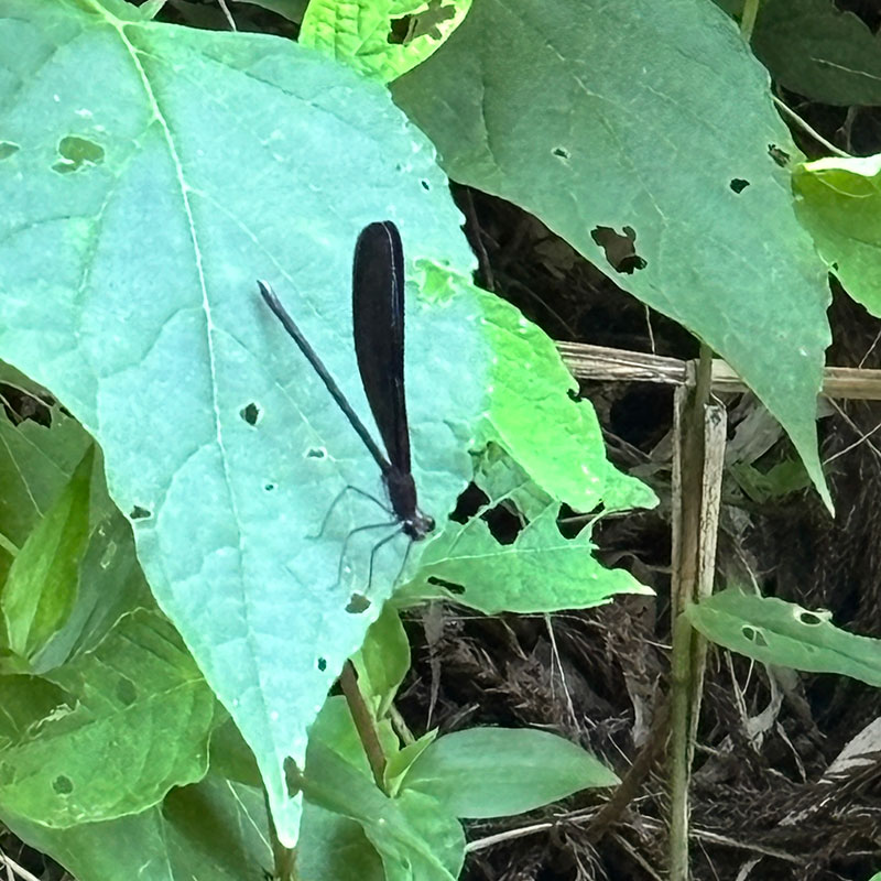 夕方、家の裏山でハグロトンボを見た。