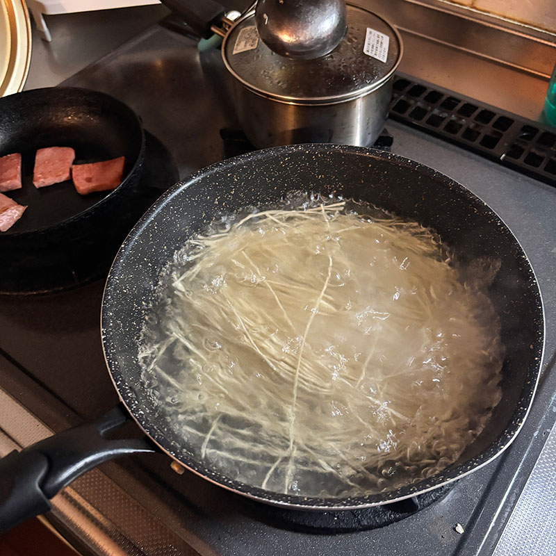 顆粒のだしを何種類か使って作ったので一口目から美味しいけど後半辛くなる。