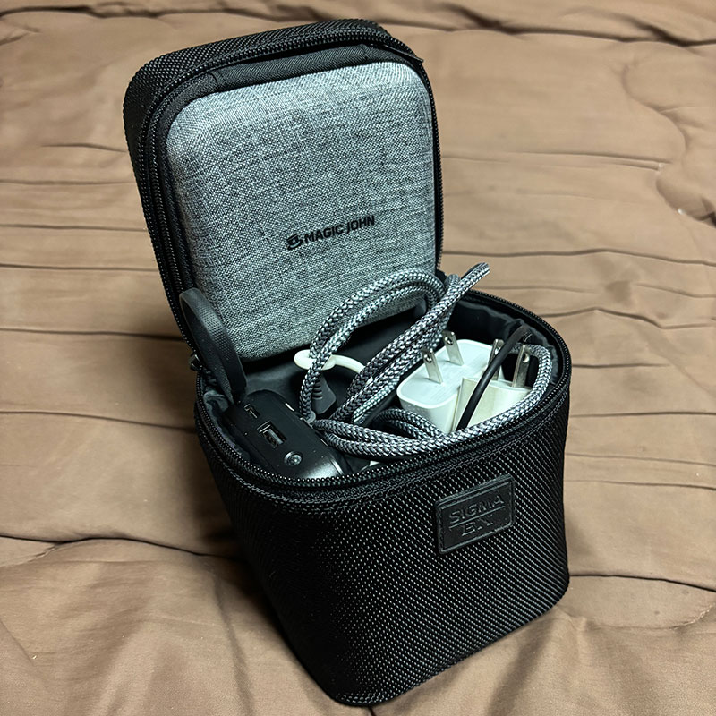 いろいろなコードとアダプタ入れてるケースの蓋にシンデレラフィット。もともとは壊れて使えなくなってしまったシグマのレンズケースだった。嘘みたいにピッタリ。嬉しい。