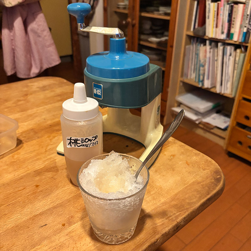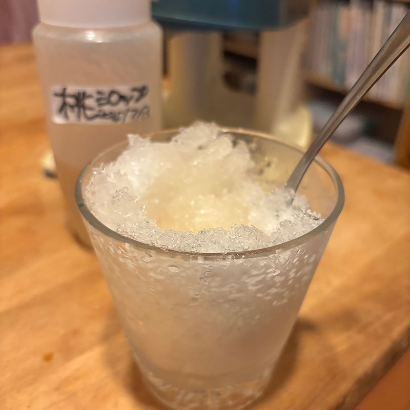 桃と氷砂糖で仕込んだ自家製シロップで。