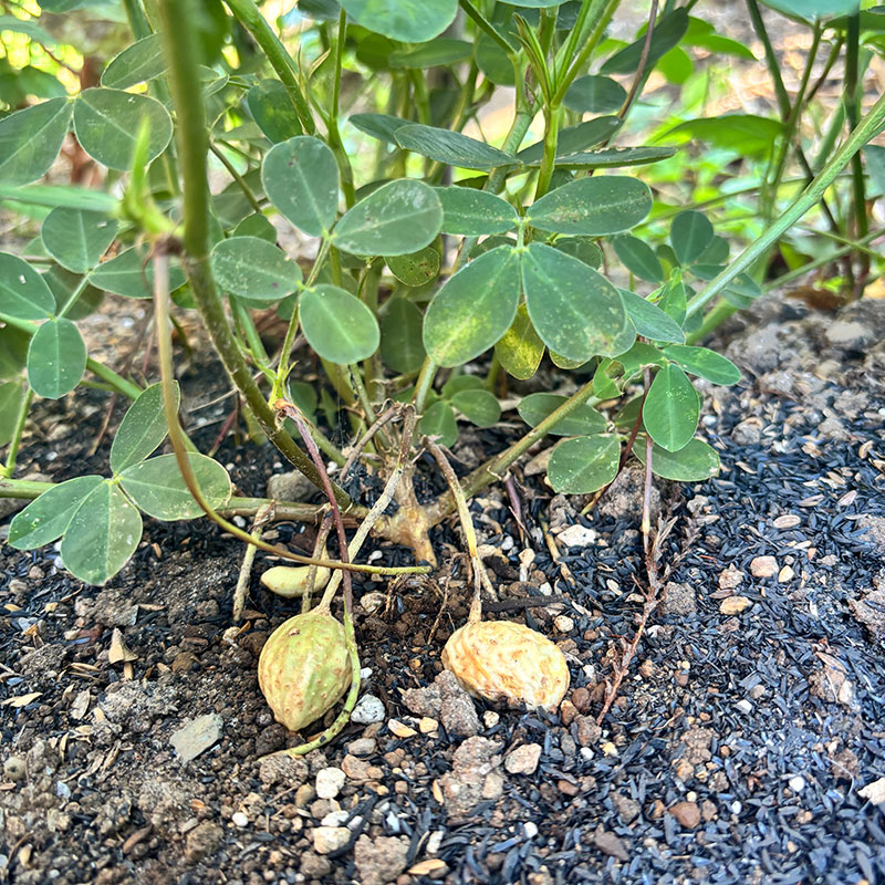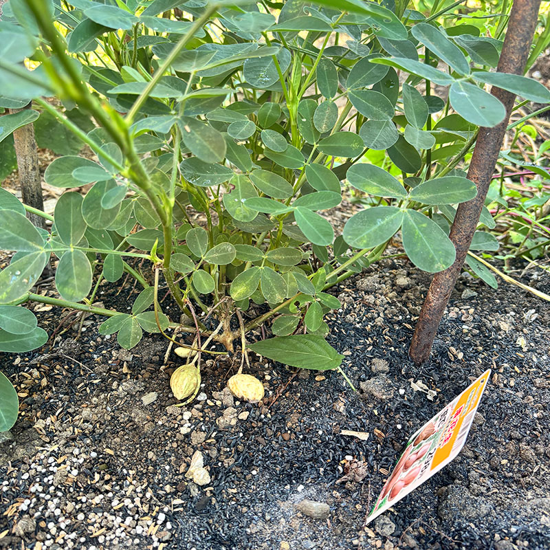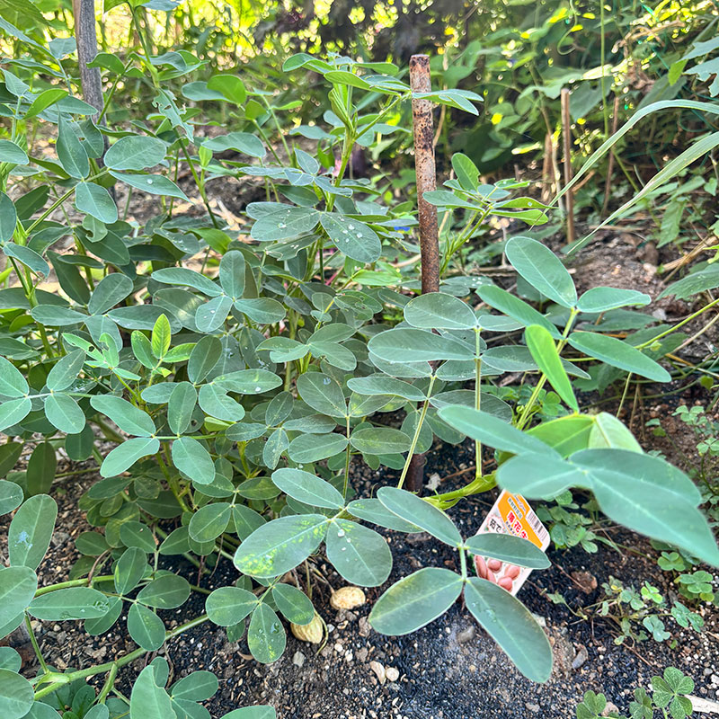 落花生。花が終わると枝が長く伸びて下に伸びるように”落ち”土の中に潜り込んで実がなる、