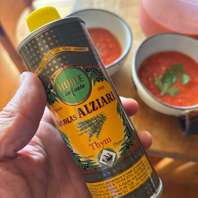 妹家族にもらったお土産のタイム入りのオリーブオイルをトッピング。