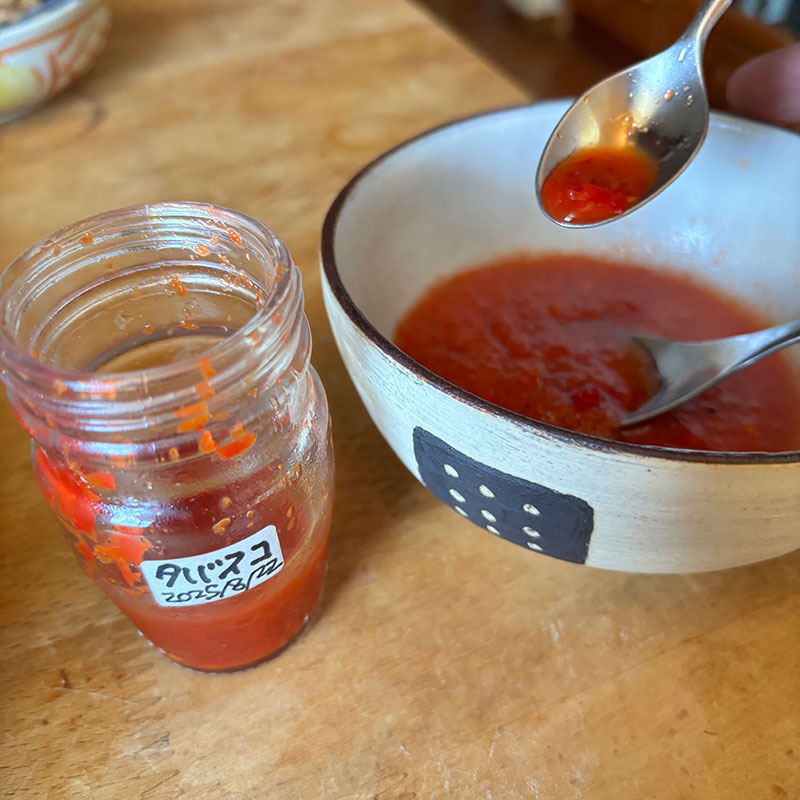 後半、自家製のタバスコで味変。