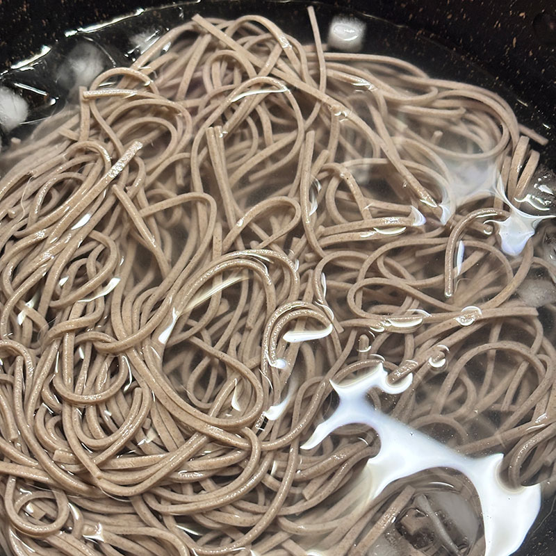 冷たいと味がぼけるのでやや濃い目に作ったつゆを冷蔵庫でよく冷やしておいた。