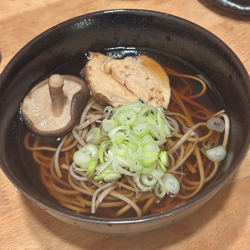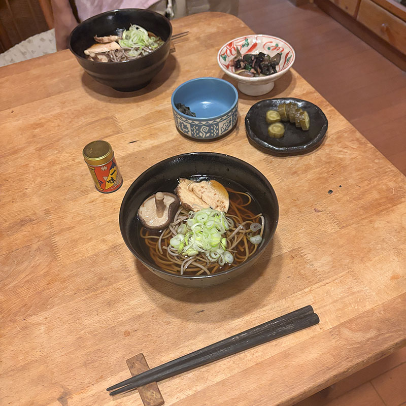 夕食に冷たい肉そば。