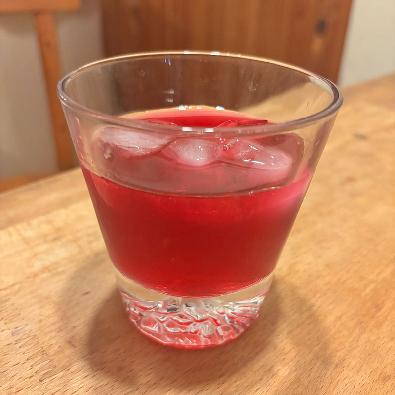 食後に赤紫蘇ジュース。色がきれいだな。