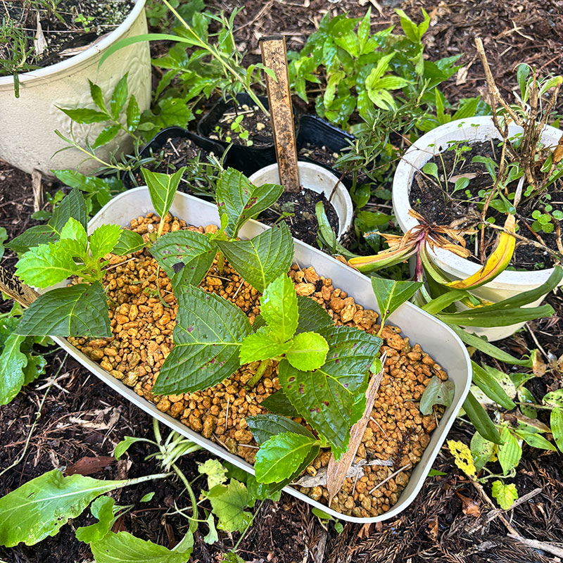 挿し木にして増やそうと思ってる紫陽花。家の紫陽花の枝を切って挿しておいたら無事新しい葉が元気に出てる。水が大量に必要な紫陽花はまた反日影に置いておく。
