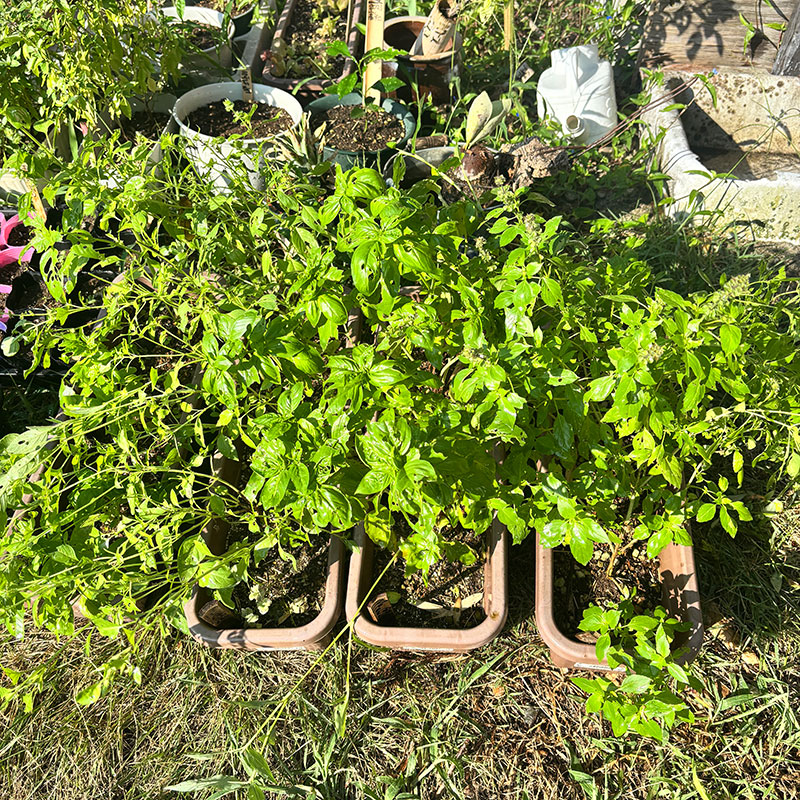 自家採種で繋いでる4種類のバジルの葉が虫に食われ放題。