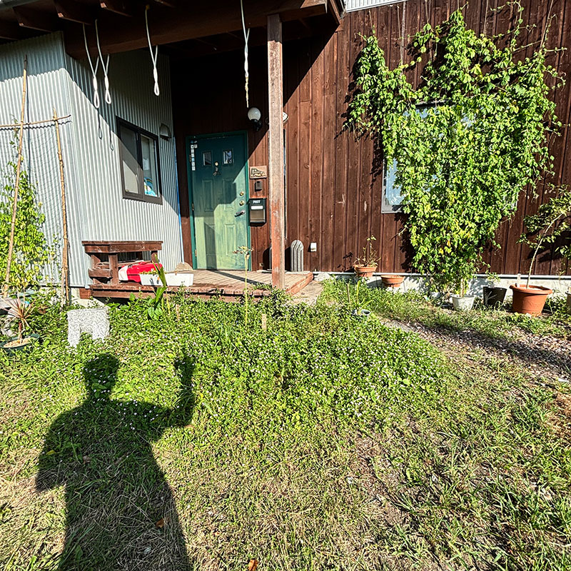 玄関周りのヒメイワダレソウと緑のカーテンのゴーヤ、この夏もよく育ってくれました。