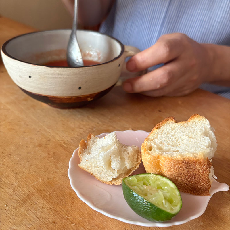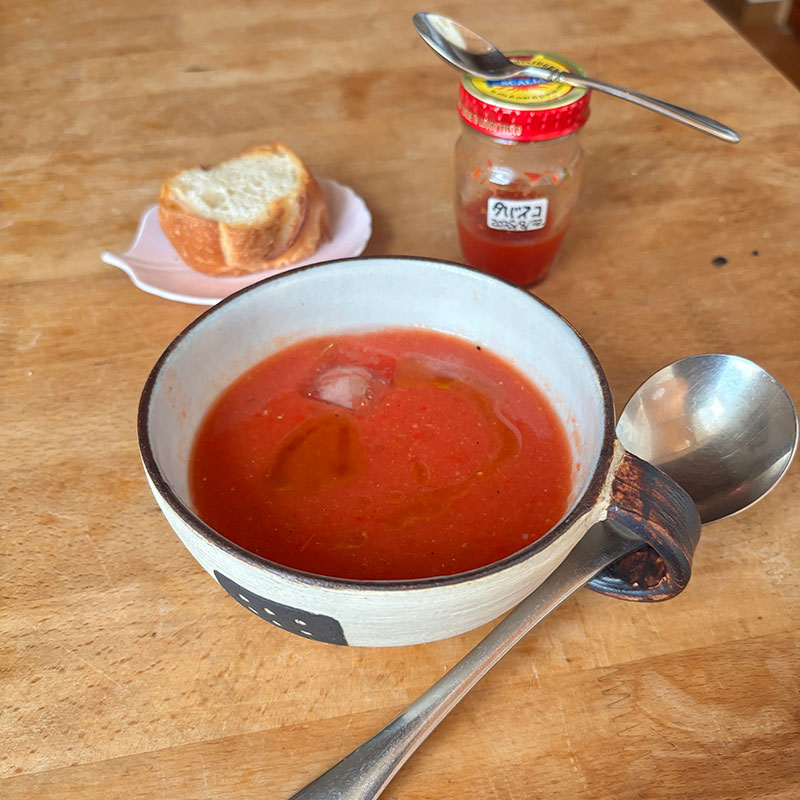 酸味がキツくなりすぎるのでは?と思ったけど香り良くトマトのクセを無くしてくれてこれも大正解でした。ガスパチョにすだち最高!しかも本番スペインの人だってこの組み合わせはなかなか食べられないよw カミさんもすだち入り美味しい!って。
