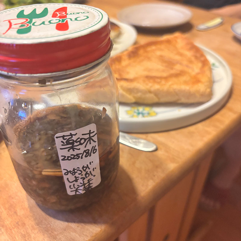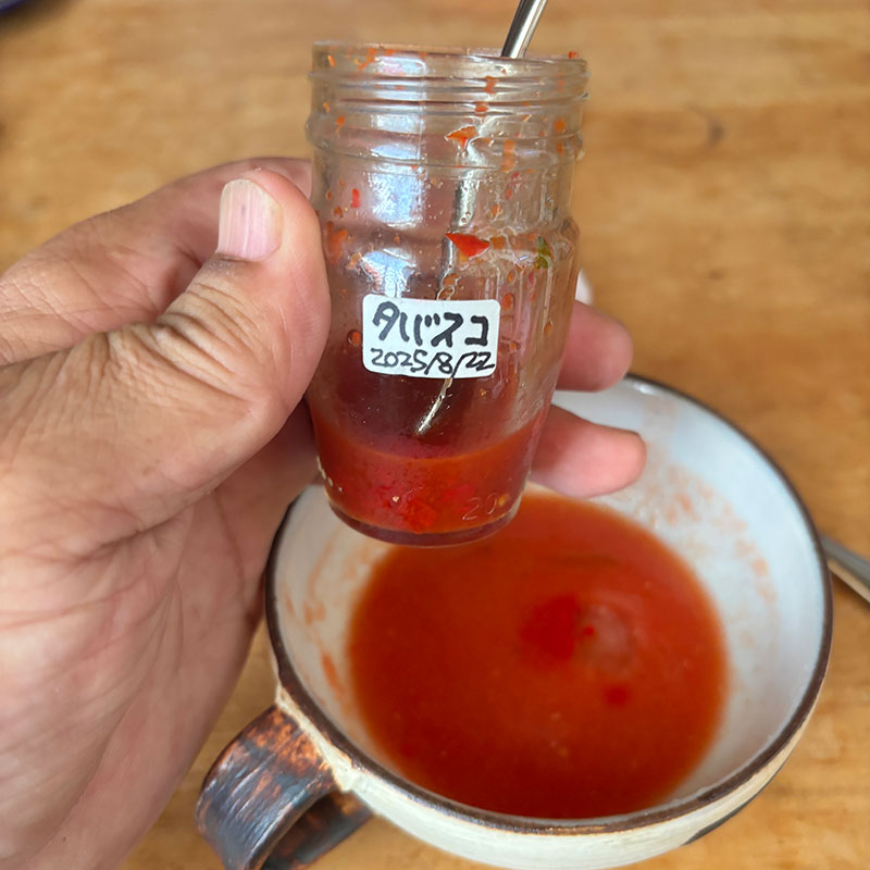 後半、味変で自家製タバスコひと垂らし。これも本当に最高!幸せな朝だ。今日も体温越えで熱中症に気をつけろ!の予報の中、真昼間に作品の搬出に出かけなきゃだ。