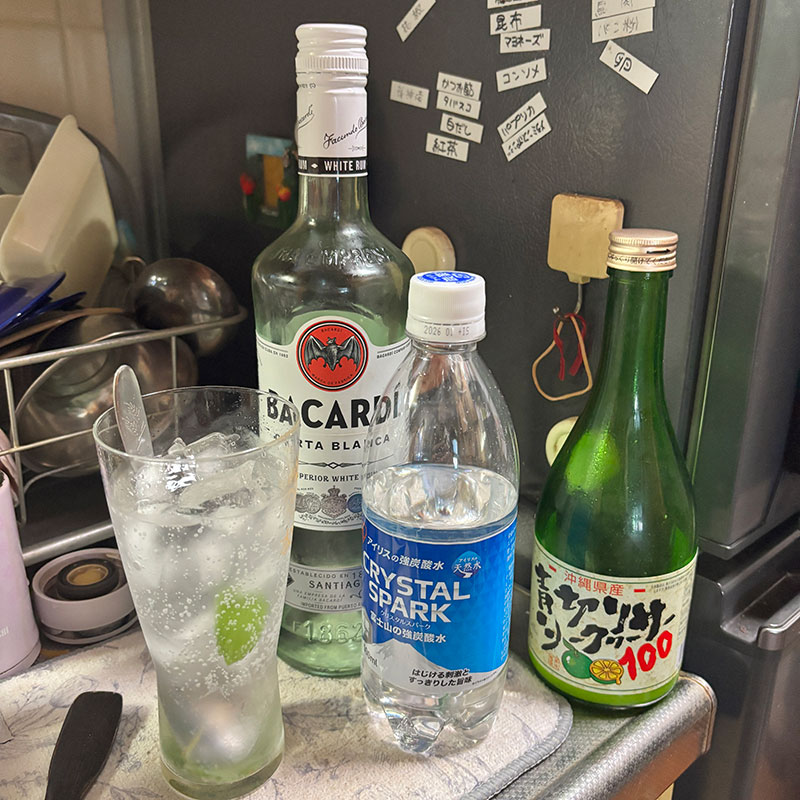 庭のミントでモヒート作って飲みながらつまみの準備。