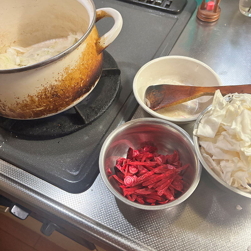 小さいのをかき集めてボルシチ作った。