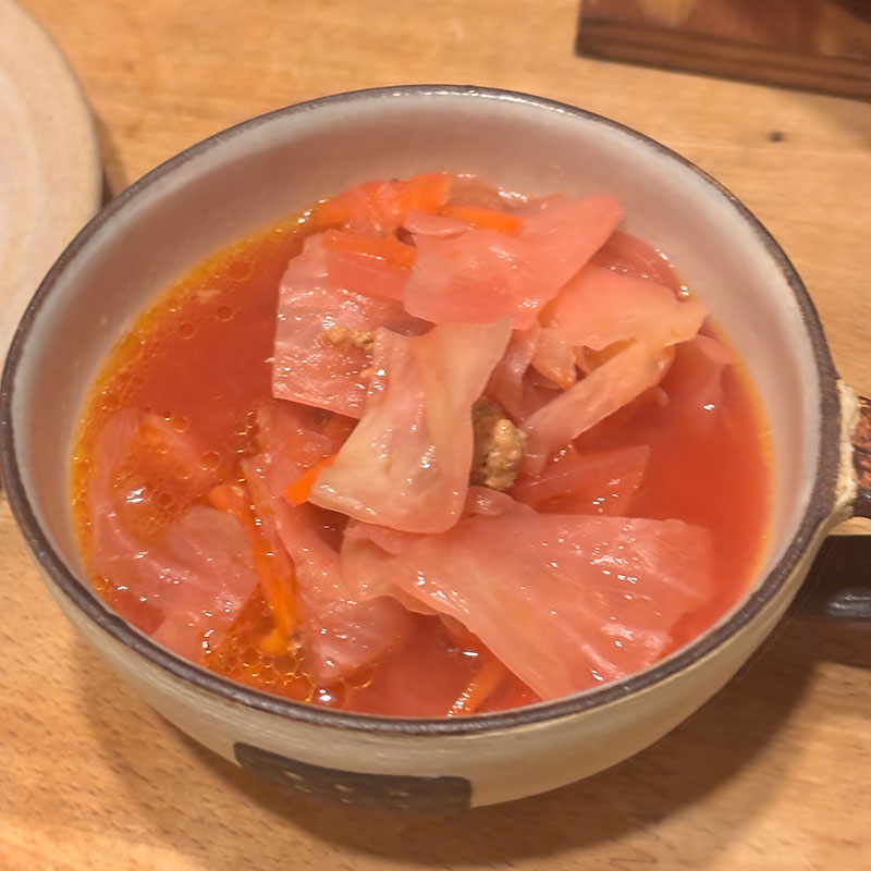 なんとかトッピングできた。ボルシチ美味しい。