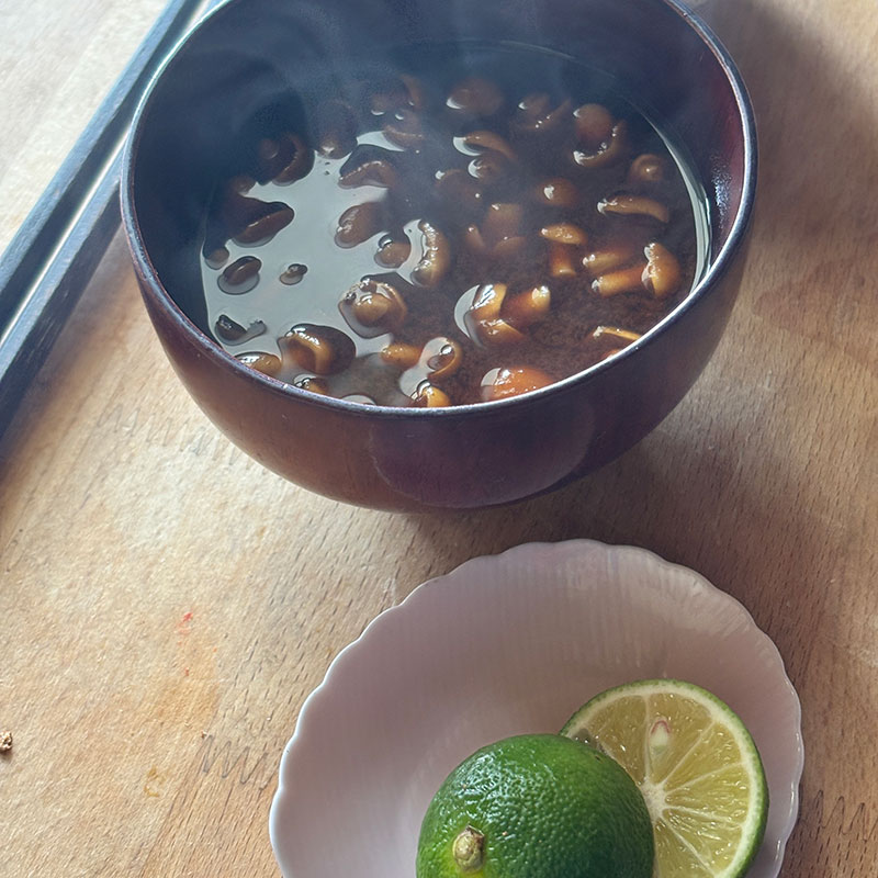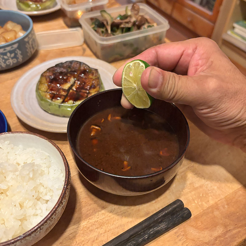 八丁味噌の味噌汁にたっぷり絞るのが大好物なので
