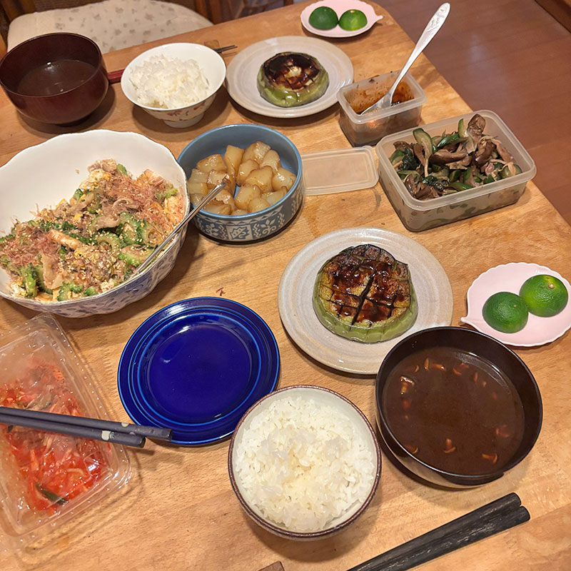 幸せ。米茄子には群馬の焼きまんじゅうの甘い味噌だれつけて。