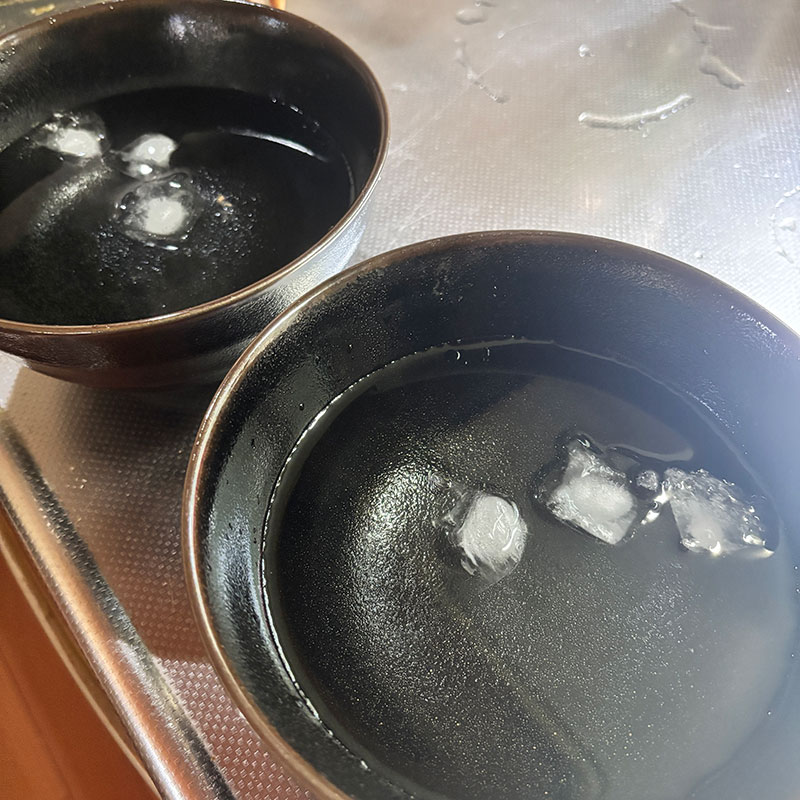 貴重な徳島のすだちを生かすために一昼夜水につけた昆布と浄水、