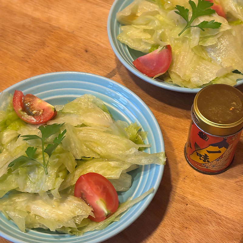 今夜の居酒屋我家にカミさんがハンバーグ焼いてくれると言うので、これに塩とオリーブオイル加えてドレッシングにしてサラダ作るつもり。