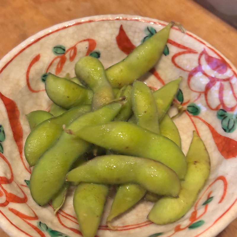 昨日茹でた枝豆。皮に振った塩が染みて美味しくなってた。