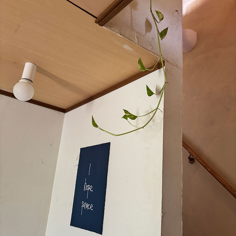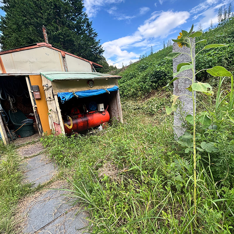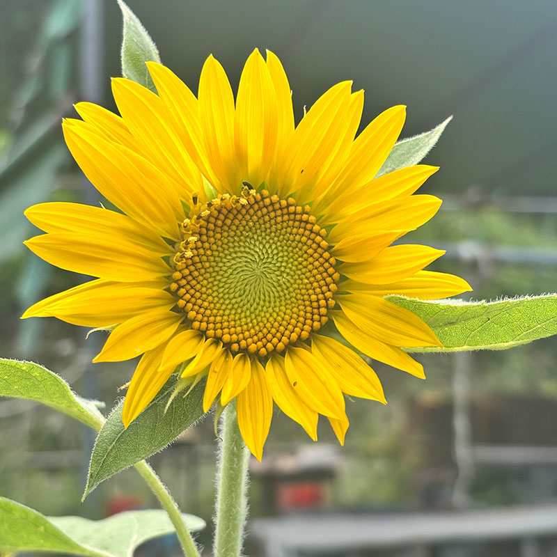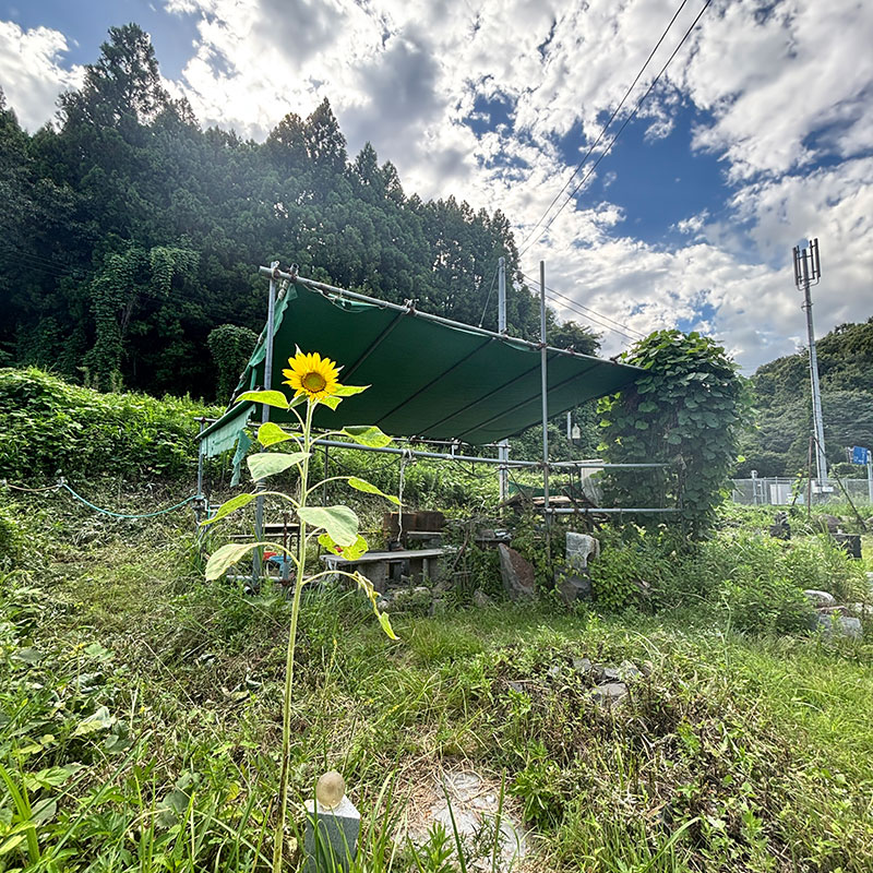 プレハブ小屋前に植えたこのひまわりだけひょろひょろだけど