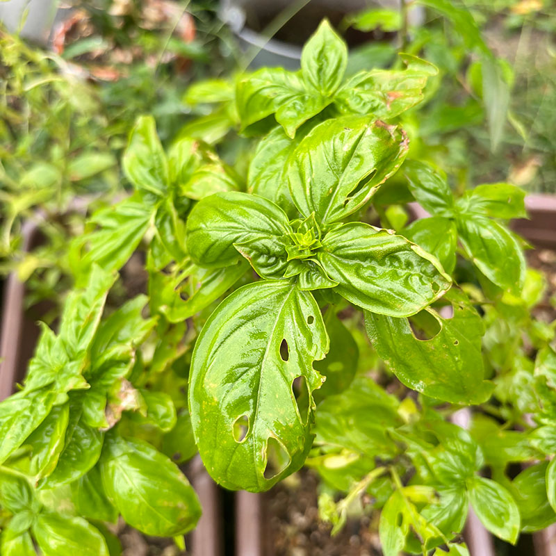 さらにそのスペアミントの葉までずいぶん虫に食われた。猛暑で他に食べるものが無かったのか生態系が変わったのか、虫除けにもなるハーブが喰われまくった夏だった。それでも4週類のバジルは自家採取で種を繋げそう。