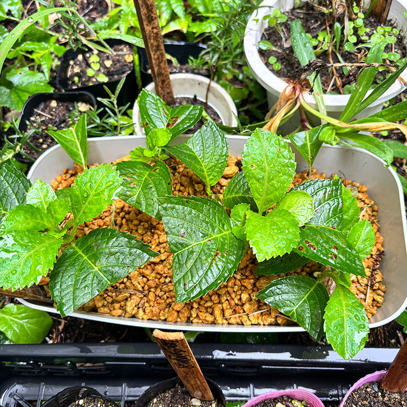 雨の朝。いつもの畑の見回り。今年の夏はバジルが虫に食べられまくった。