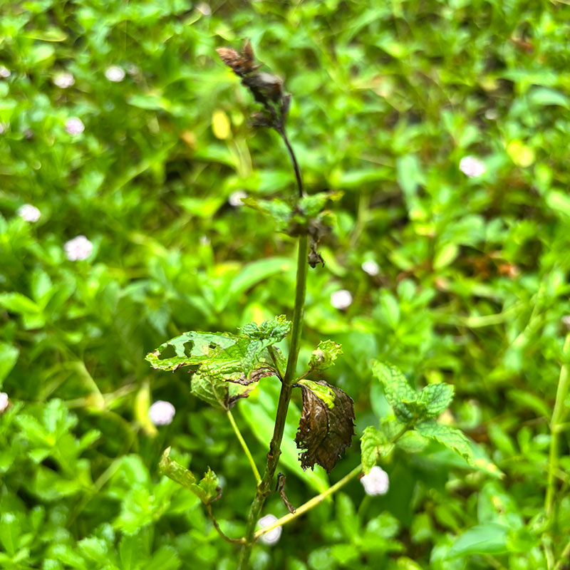 夏に勢いよく葉を繁らせるモヒート用のミント、イエルバブエナが育たなかった。