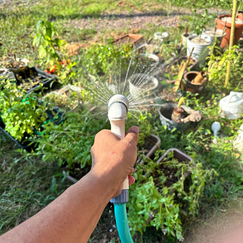 今日も体温越えの気温の予報。プランターや鉢に水をやっておく。焼石に水だけど。