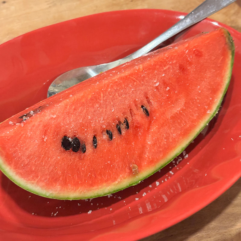 デザートに畑で育てた小玉スイカ。自分で育てた野菜の収穫は嬉しいけどスイカは特別感ある・幸