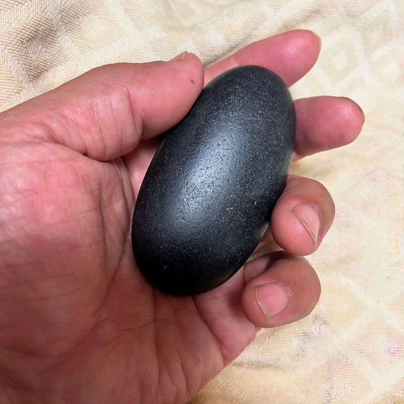 ※写真は子供の頃海岸で拾った黒い石。色も形も美しすぎて宝物にしてる。もちろん将来、石を彫ることになるなんてこれっぽっちも思っていなかった。