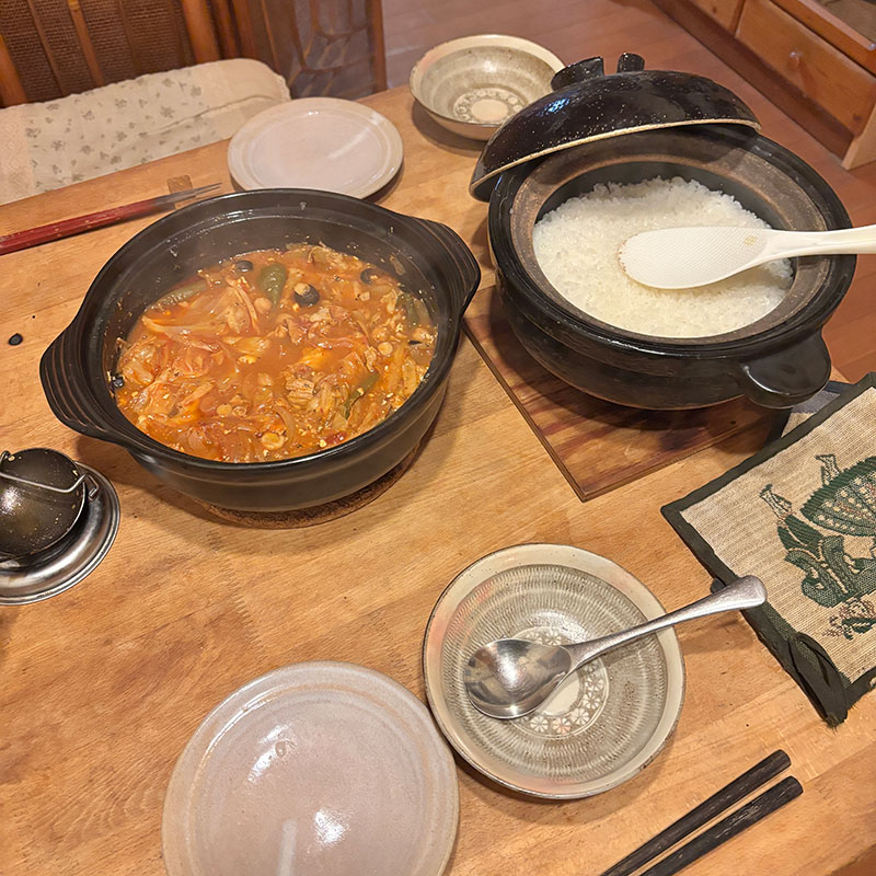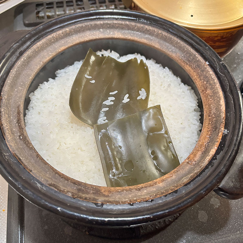 土鍋で炊いた炊き立てご飯にかけてリゾット風に。