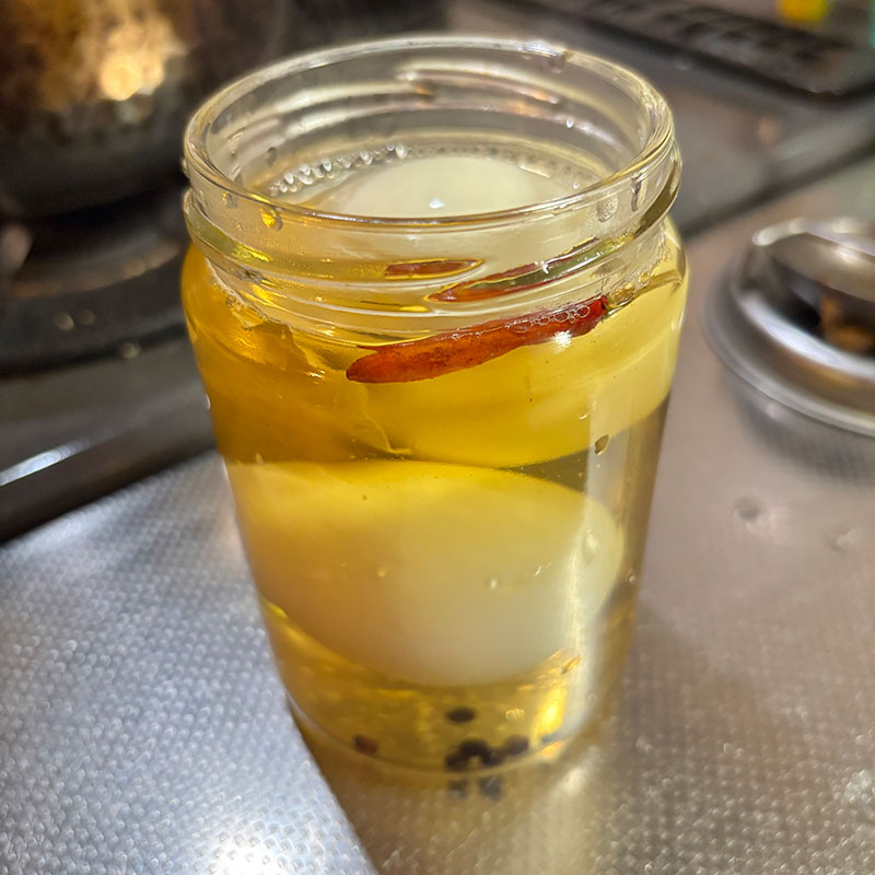 固ゆで卵のピクルスが思いのほか美味しかったのでまた仕込む。ピクルス液もったいないので一度沸騰させて再利用。