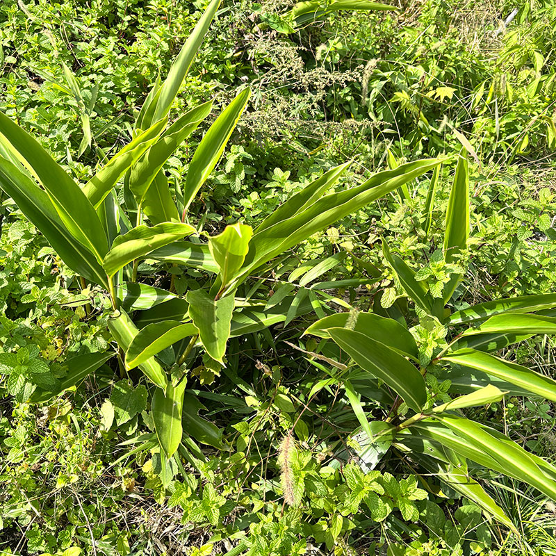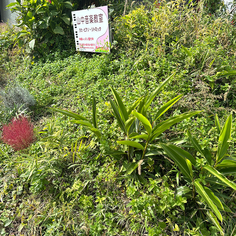 大きく葉を広げている月桃。ここは宮城県だけど。