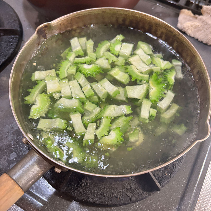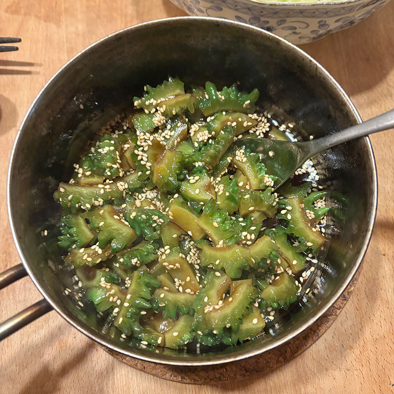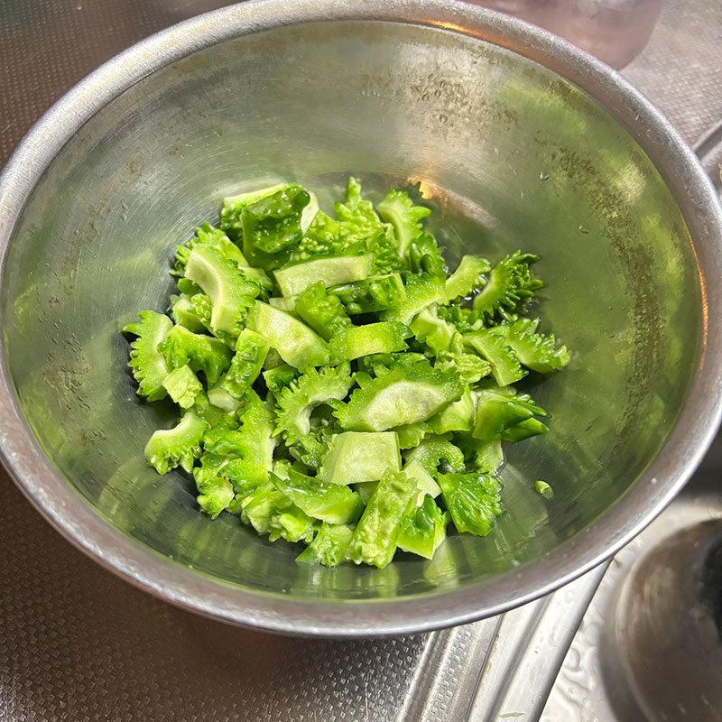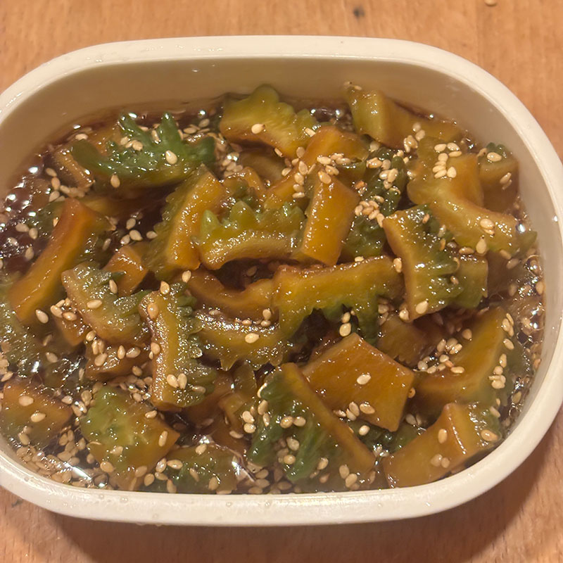 緑のカーテンのゴーヤの実がまだ採れる。流石に夏の最盛期のものとは大きさが全然違うけど。僕もカミさんもハマりまくってるゴーヤのナムルにする。少しずつ変えながら作って今レシピが安定してきたから来年忘れても思い出せるようにメモしとく。